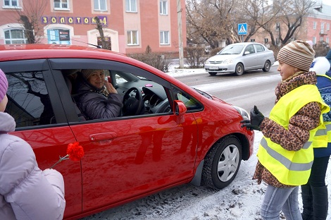 Многие женщины-водители, остановленные инспектором, сначала не могли понять, что происходит. Ведь машину сразу окружали несколько подростков, которые наперебой напоминали о правилах дорожного движения, в том числе и перевозке детей. Еще больше глаза женщин округлялись от удивления, когда им вручали цветы – подарок к грядущему празднику. Всего школьники подарили шестьдесят гвоздик.