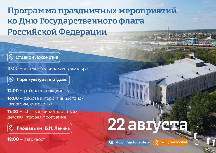 Для более взрослого населения на стадионе “Локомотив” организована акция “Российский триколор”, а вечером с площади им. Ленина стартует автоквест.