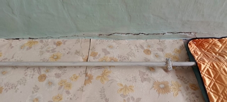 Барак на Песчаной, 11 официально признан аварийным. В квартире Татьяны Анатольевны потолок держится на честном слове, стены пошли трещинами, а сквозняки гуляют так, что приходится постоянно запенивать щели.