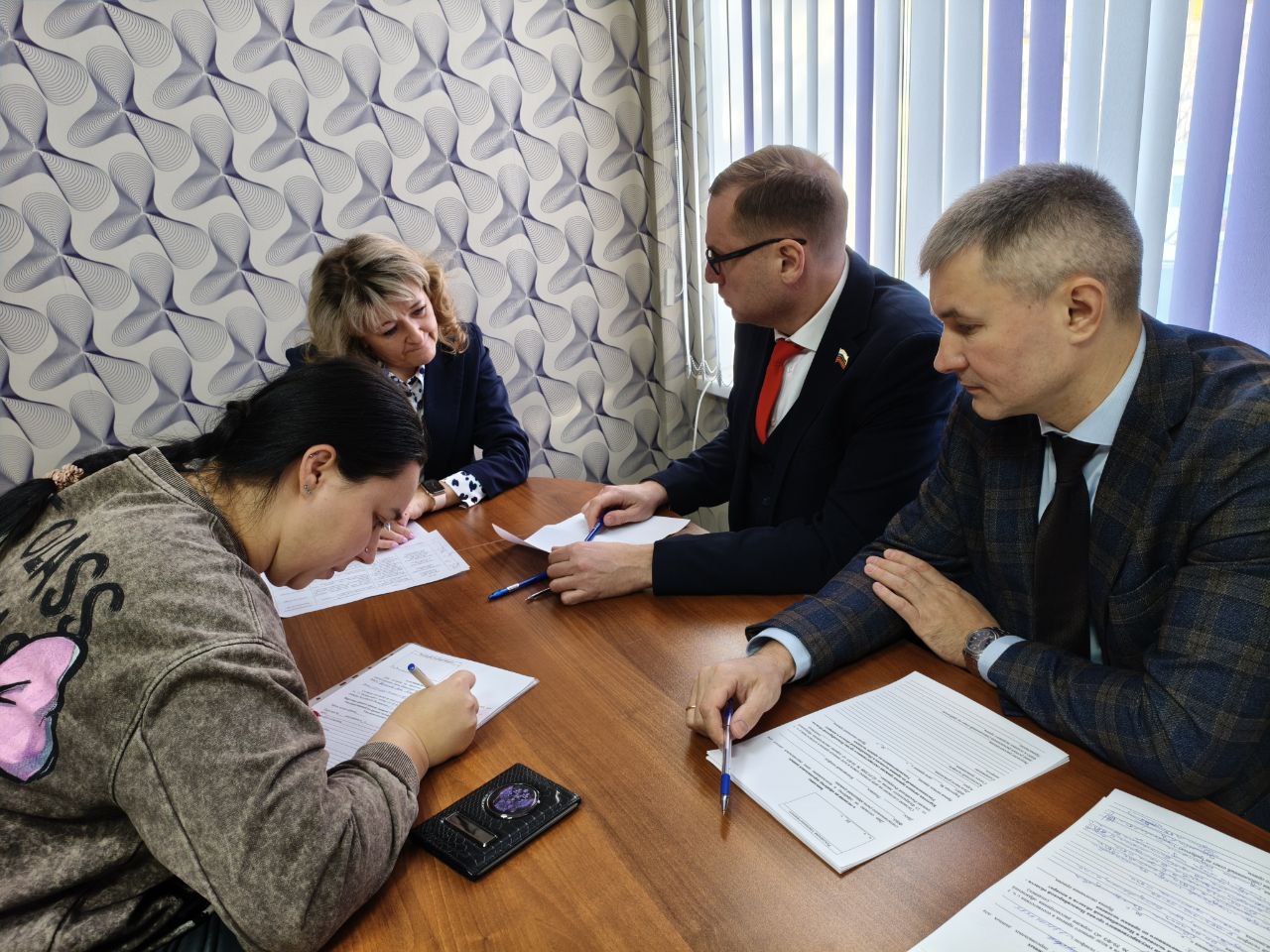 Ключевым событием дня стал личный прием граждан, который Елена Зерняева провела совместно со своей командой, сотрудниками аппарата Александром Бутиным, Александром Кутекиным и местным общественным помощником Светланой Кравцовой.