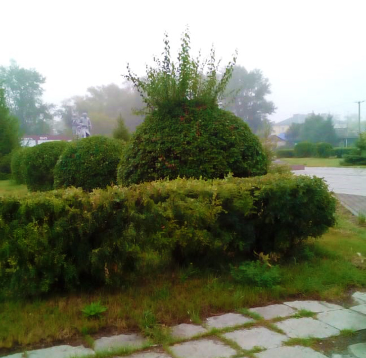 Это некачественная обрезка кустарников на Мемориале в Барабинске или бесконтрольность? Спрашивает Петр, читатель газеты «Аспект».