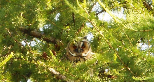 Птицы не заставили себя долго ждать и прилетели снова все трое. Совята не только не испугались присутствия людей, но и просидели на лиственнице весь день.