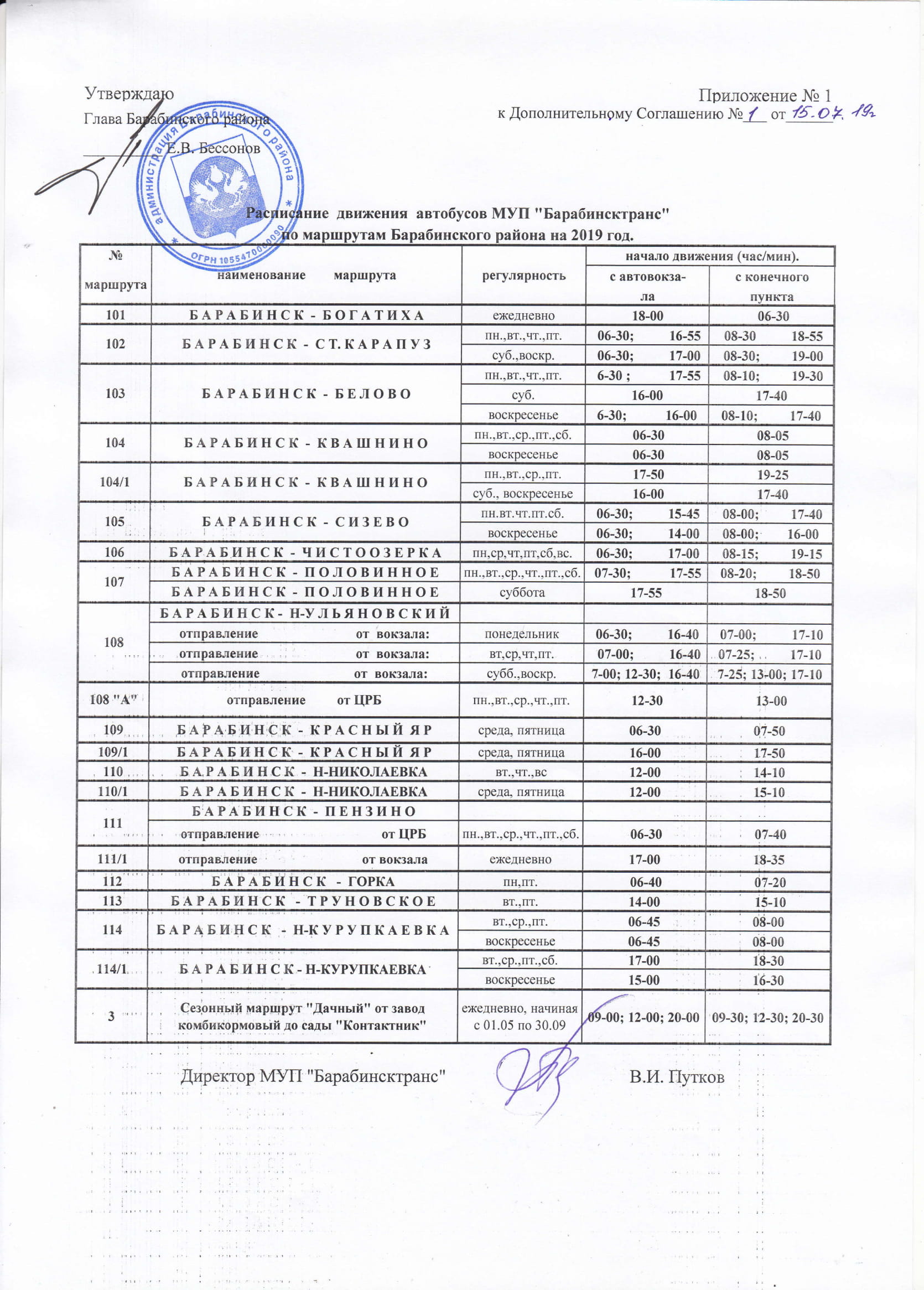 МУП «Барабинсктранс» сообщает об изменении расписания движения межпоселенческих автобусов по маршрутам Барабинского района. Изменения начнут действовать с 31 июля 2019 года.