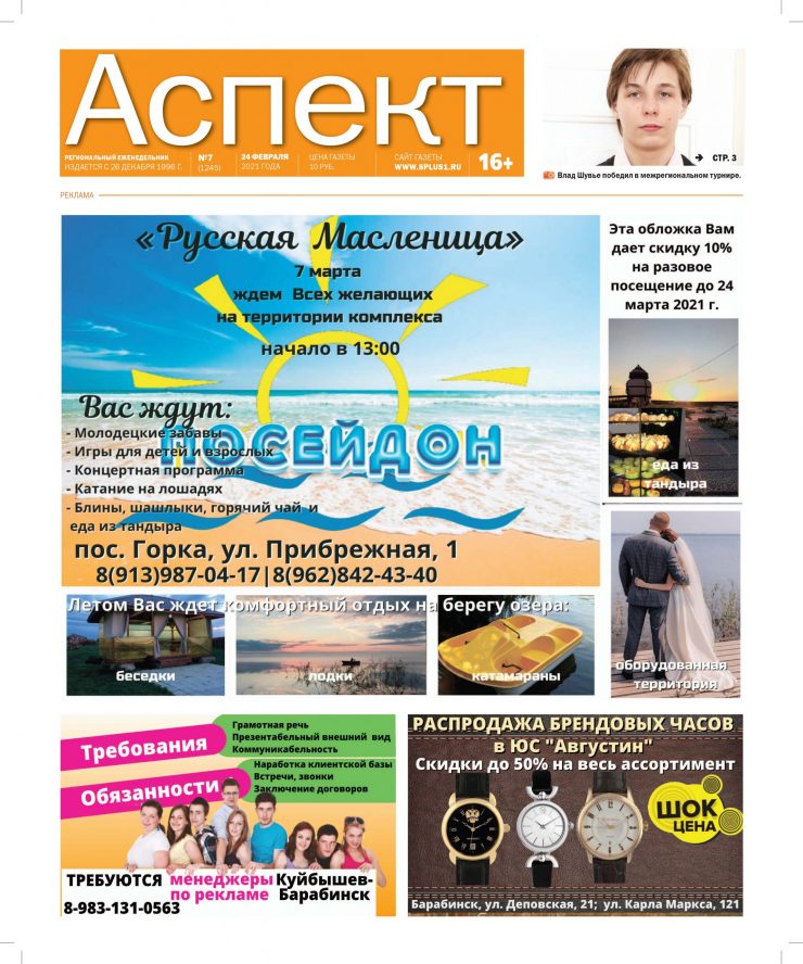 Если вы сфотографируете обложку “Аспекта” с рекламой “Посейдона” или покажете обложку газеты, вам скидка – 10% на разовое посещение до 24 марта 2021 года.