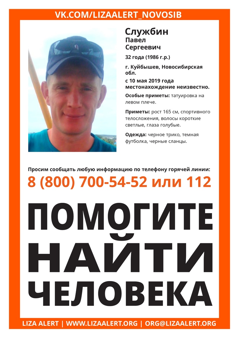 Без вести пропал Службин Павел Сергеевич. Ему 32 года. С 10 мая 2019 года его местонахождение неизвестно.