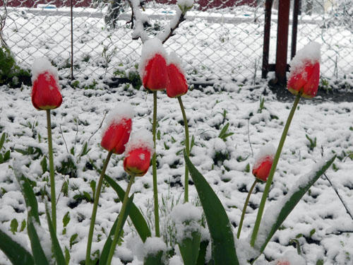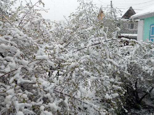 А в Барнауле утром 11 мая, как сообщает “Алтапресс. ру” выпал снег. Все цветущие растения оказались под снежной толщей. Правда, после обеда все следы снегопада исчезли.