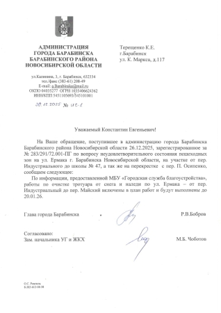 На депутатский запрос Константина Терещенко пришел официальный ответ за подписью главы города Романа Боброва. Документ гласил, что вопрос зарегистрирован и принят в работу.