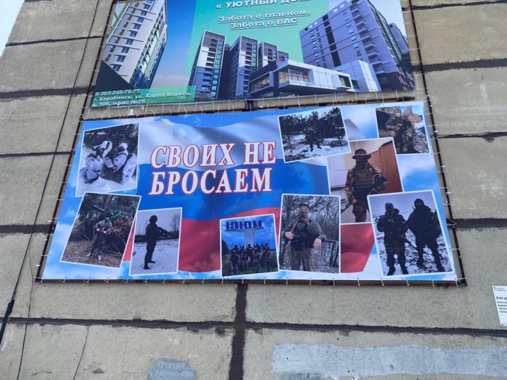 На улице Островского, 5 в Барабинске разместили баннер “Своих не бросаем” в поддержку воинов-земляков в честь 23 февраля, Дня Защитника Отечества.
