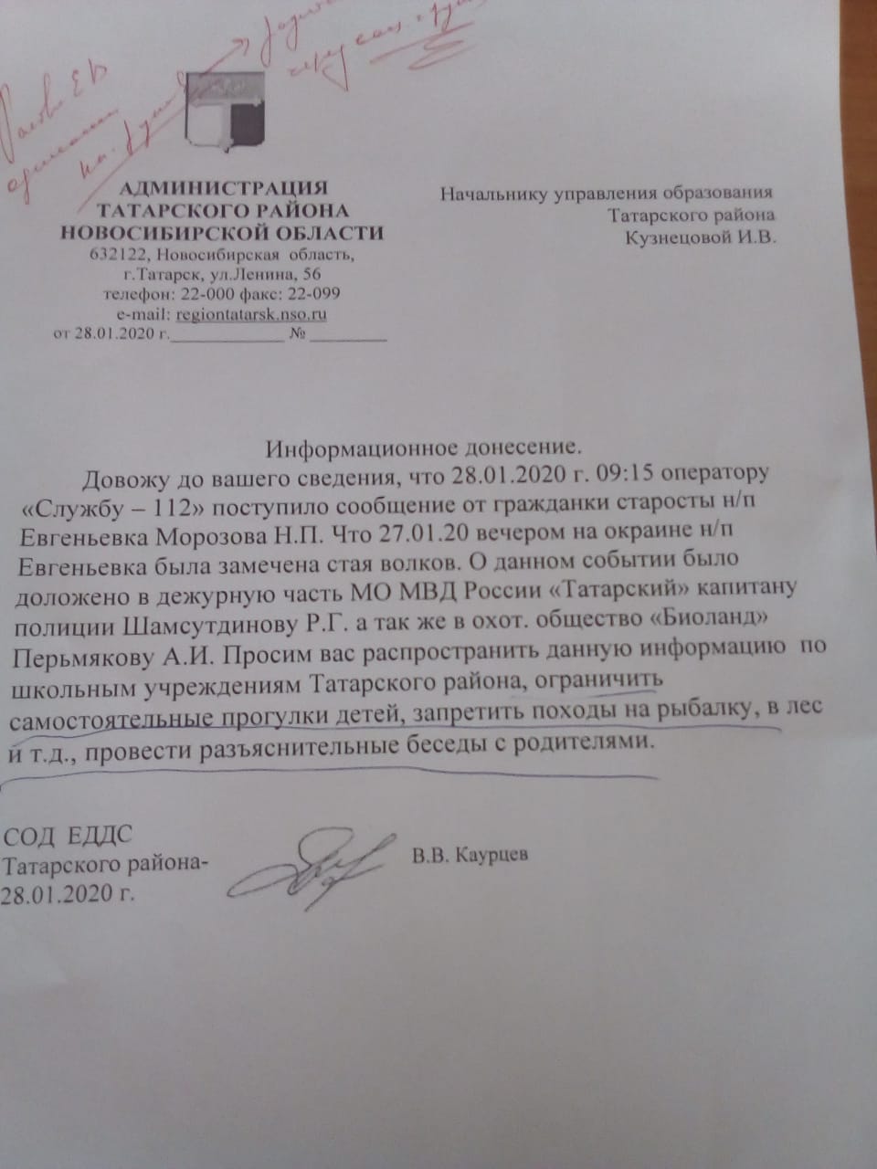 Позже администрация Татарского района опровергла это сообщение, назвав его не соответствующим действительности. Однако имеет место быть официальное информационное донесение от 28 января.