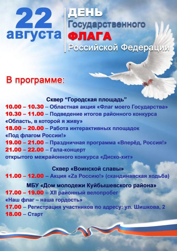 Завтра, 22 августа, состоится праздничное мероприятие, посвященное Дню Государственного флага Российской Федерации!