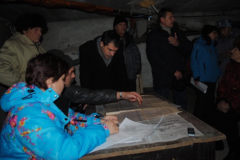 Около сорока возмущенных жителей собрались в подвале дома №5, чтобы обсудить создавшуюся ситуацию. Для ее прояснения пригласили на встречу главу района и главу администрации города.
